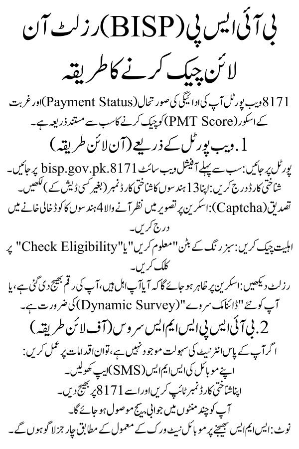 | Check Method 1 | 8171 Web Portal (8171.bisp.gov.pk) |