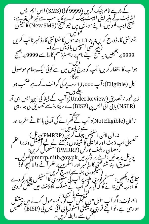 For a detailed status update and to see your payment schedule, use the official PM Ramzan Relief Portal (PMRRP):