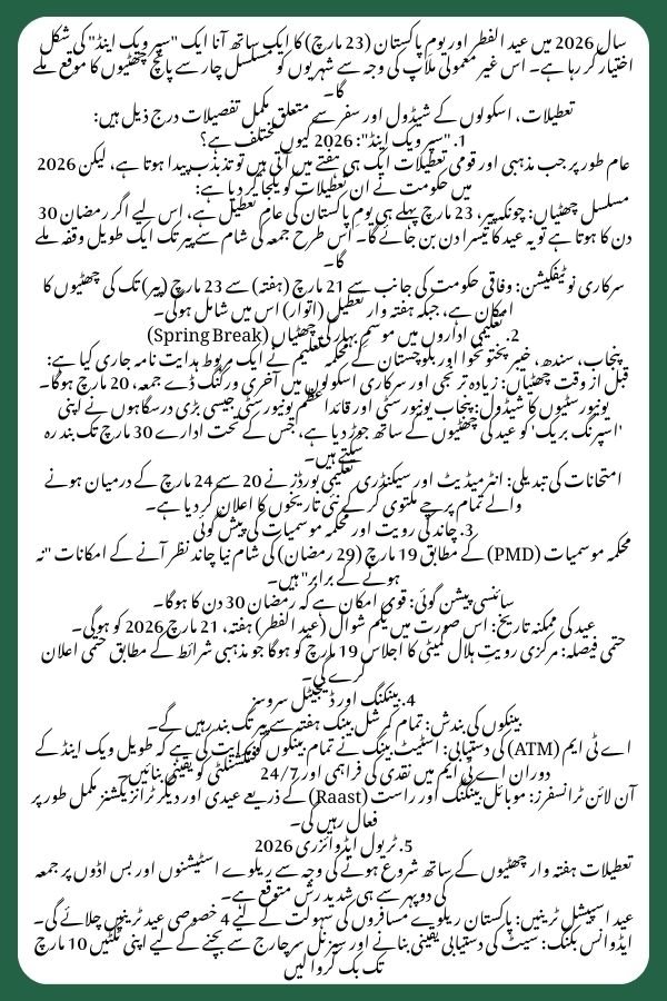 - Spring Recess: Many universities, including Punjab University and Quaid-i-Azam University, have announced their Spring Break to start from Eid, with some institutions remaining closed until March 30.