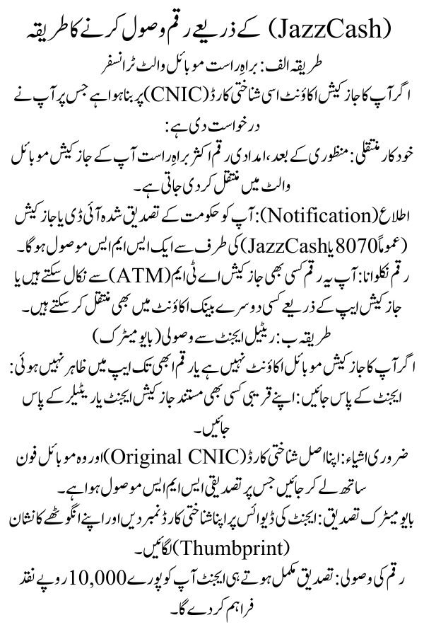 Below is the complete guide on how to verify your eligibility and receive your payment via JazzCash.