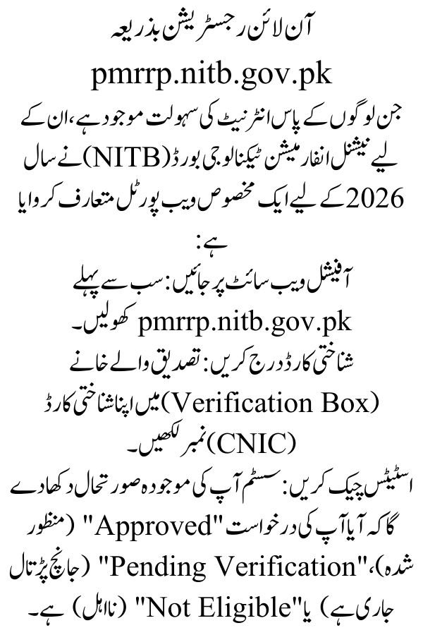 Online Registration via pmrrp.nitb.gov.pk