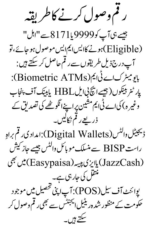 - Digital Wallets: Payments are being credited to BISP-linked mobile wallets like JazzCash or Easypaisa.