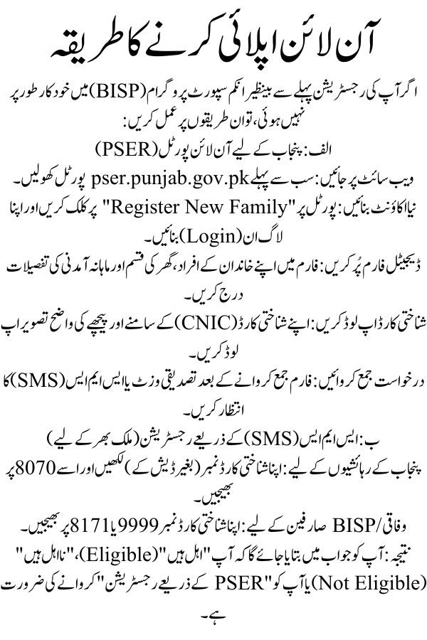 If you haven’t been automatically registered through the Benazir Income Support Programme (BISP), follow these steps: